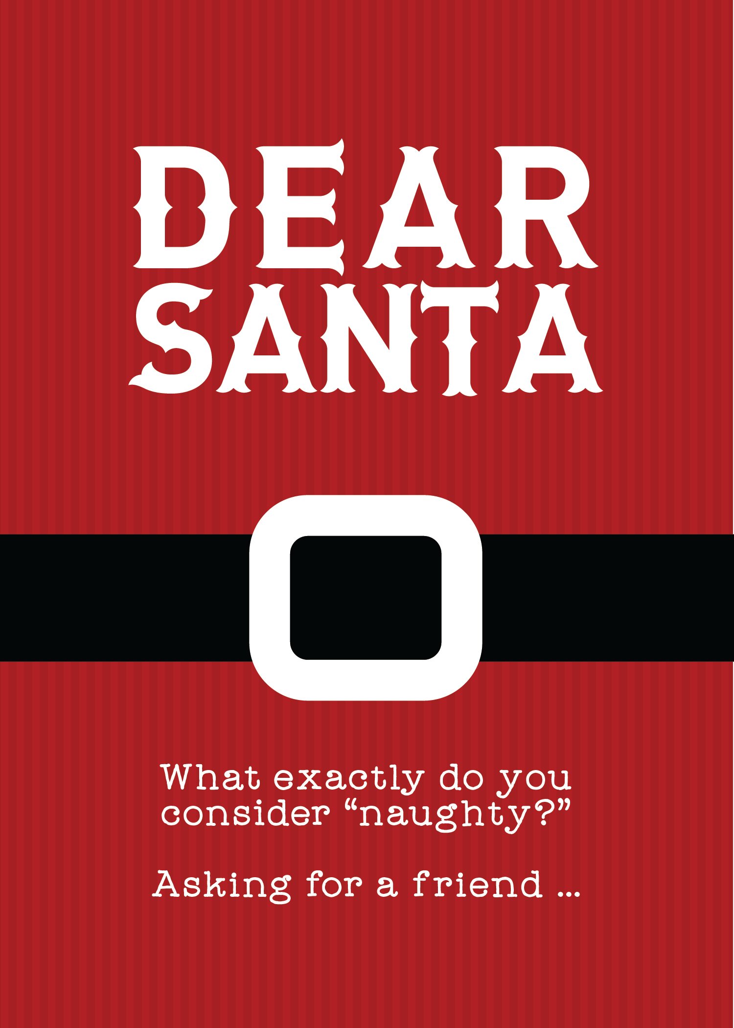 Have a little fun with this holiday card by asking Santa just what he means by the word "naughty.