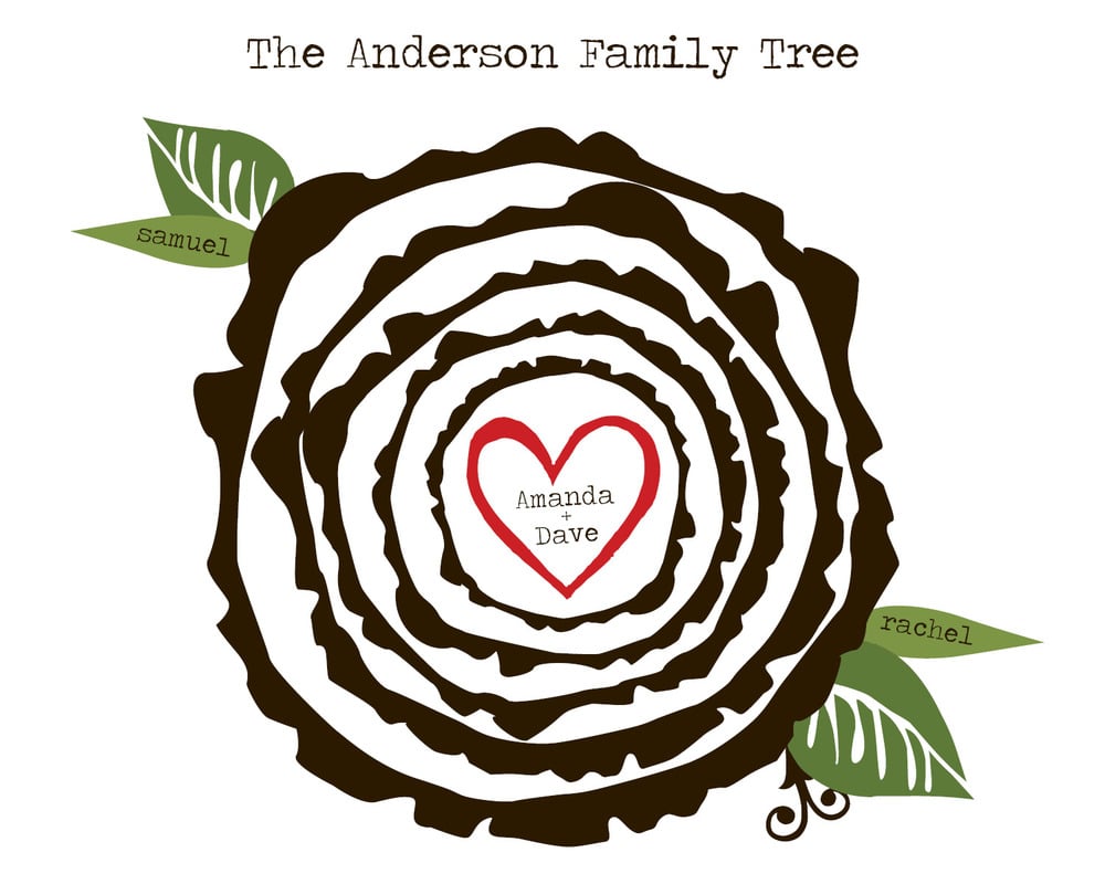 A different take on a family tree. This whimsical woodcut design can feature a couples names in the middle and children's or pets names as the leaves. I can add more leaves depending on your family. This is a great gift for new parents, grandparents, in-laws, newlyweds, etc.